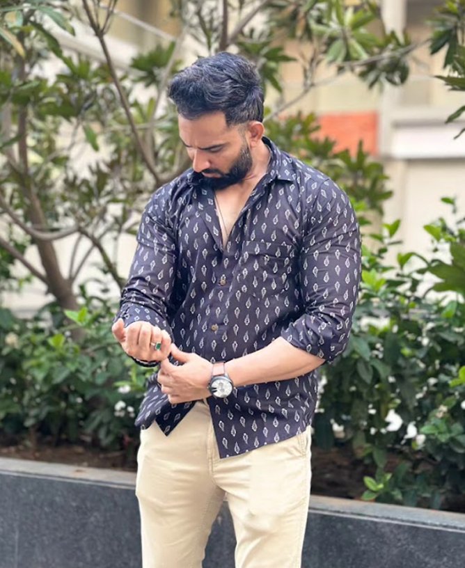 Men’s Full Sleeve Shirt – Blue with Colorful Pattern